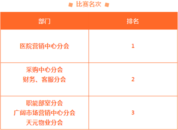 第三名 职能部室分会;广阔市场营销中心分会;天元物业分会