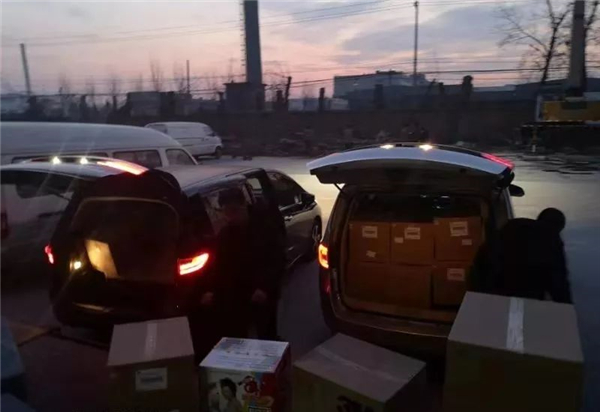 广阔市场营销中心员工,年三十一早,将口罩等防疫物品送往社区医院
