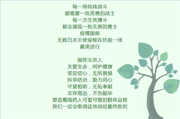 他们以实际行动诠释着“关爱生命、呵护健康”的企业理念;延续着“一方有难、八方支援”的民族精神,践行着中央储备、调拨供应的社会责任;彰显着国控北京人勇于拼搏、甘于奉献的优秀品质!