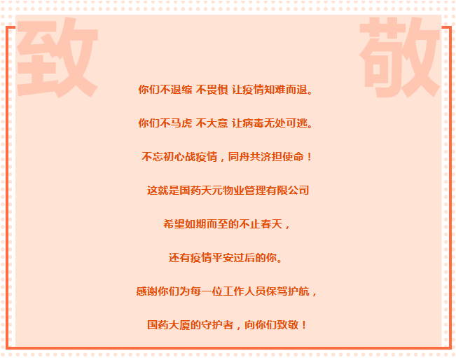 这道“关口”,是国药大厦防疫工作的第一道关隘,关系到每位楼内办公人员的安全,是防控工作的重中之重,必须守住!马广平同志采用各公司在体温检查岗分别签字登记的方式,保证了能够准确追踪到进入大楼的每一位人员,守护着大厦内办公人员的安全。