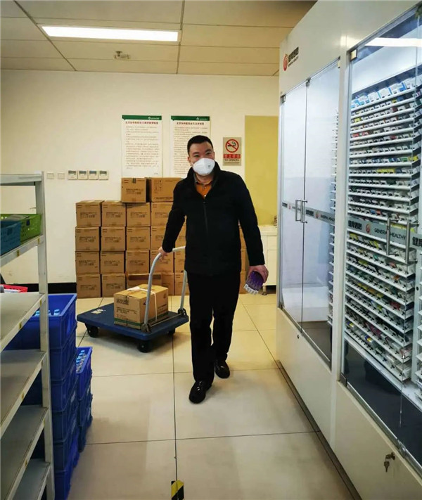 为了支持北京市疫情定点医院工作,保障一线医疗人员身体健康。魏道齐同志放弃节假日休息时间,主动联系各消毒液生产厂家,由于货源紧俏,在多方碰壁之后他并没有气馁,最终拿到了为数不多的消毒液货源。由于厂家配送能力有限,魏道齐又承担起物资配送工作,先后给复兴医院,北京医院免费义务送去了大批消毒液,每批货物总重量都超过200斤,从清点物资数量到装车卸货他全程参与,一干就是一整天。同时。他还不忘奋战在一线的药剂科同志们,魏道齐同志利用多年来积累的广阔资源,通过正规渠道在节前购买到口罩,均无偿的送到复兴医院、协和医院药剂科,很多一线老师都说:“真是雪中送炭啊,你们的关爱是对我们工作最大支持,谢谢。”