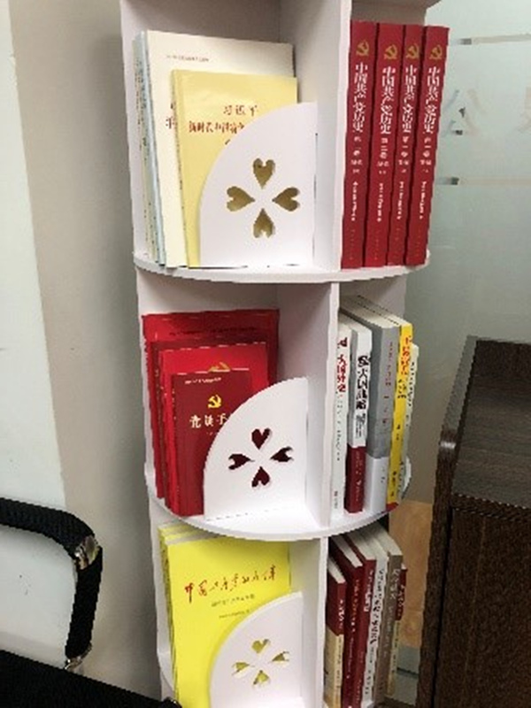 在党员活动室内,党建展板和党建读书角别具一格。这样的设置,使党建书籍更为丰富有序,使党员学习活动有场所、相互交流有平台、党性锻炼有载体。