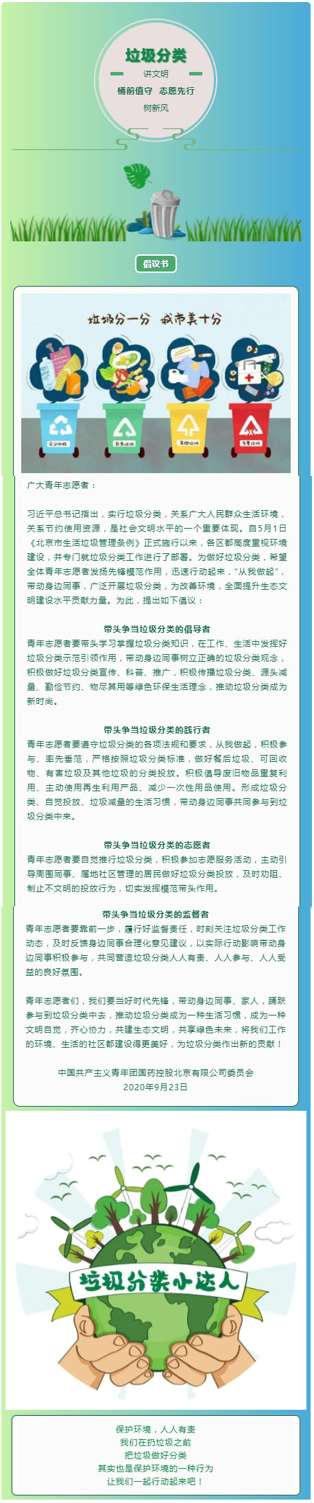【团团倡议】 垃圾分类 桶前值守 志愿先行